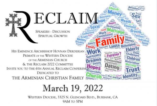 The Western Diocese of the Saint Leon Armenian Cathedral says that its annual Reclaim conference will take place on Saturday, March 19, 2022, from 9:00 am to 5:00 pm at 3325 North Glenoaks Boulevard, Burbank, California. As more parishioners note conflict within their families, the four-part discussion will focus on bringing the family together regardless of external events such as the pandemic and geopolitical crises.